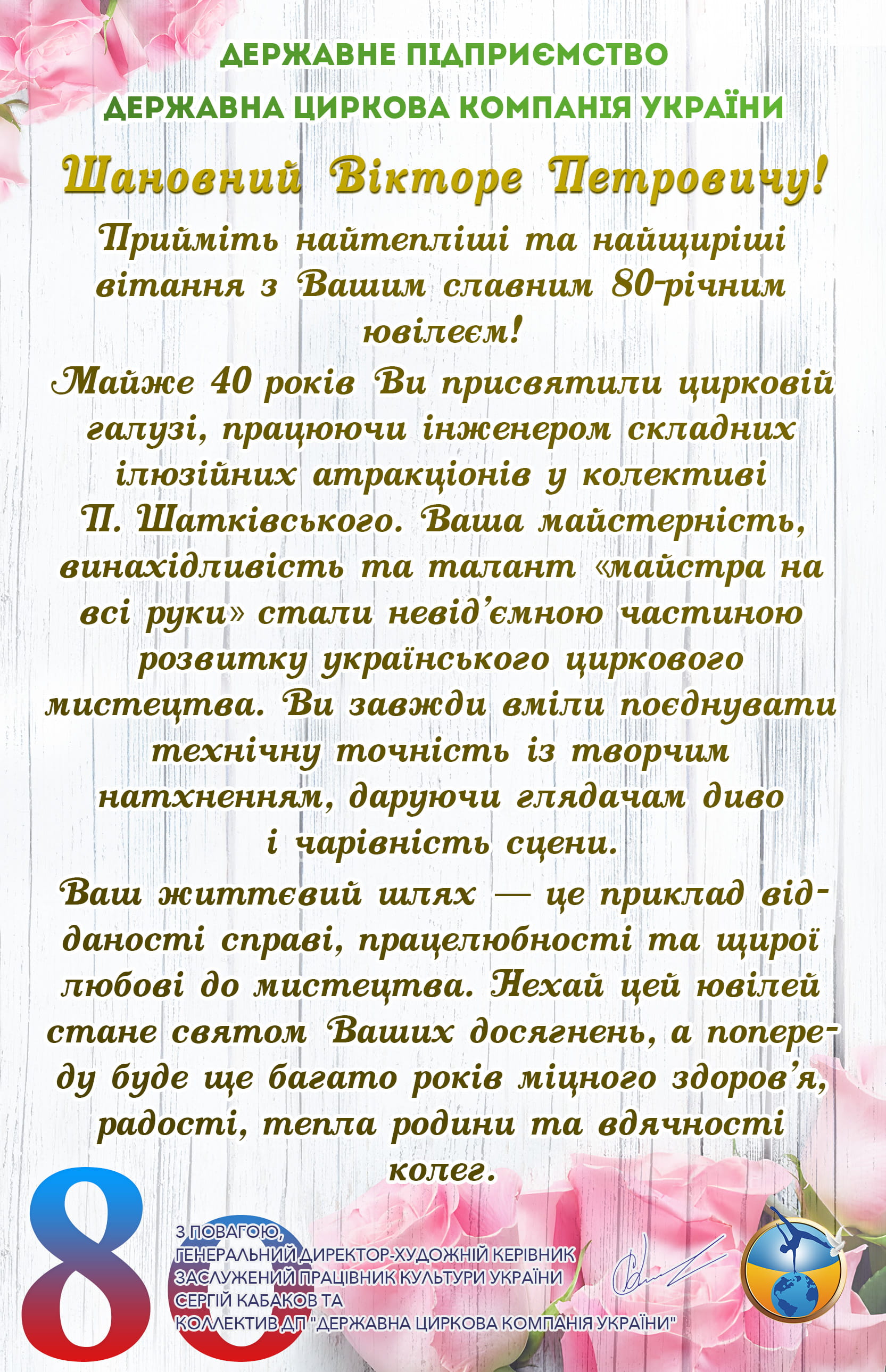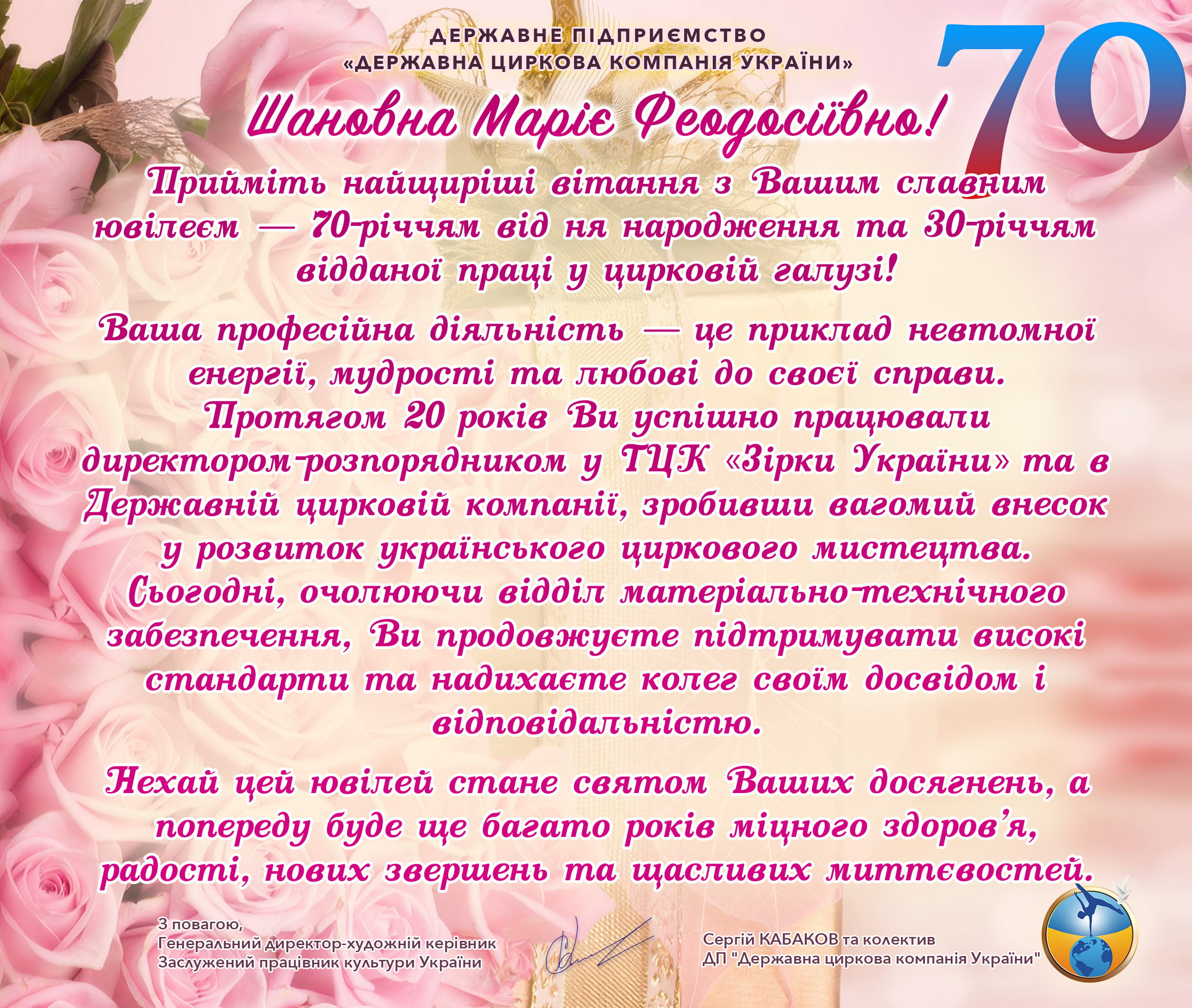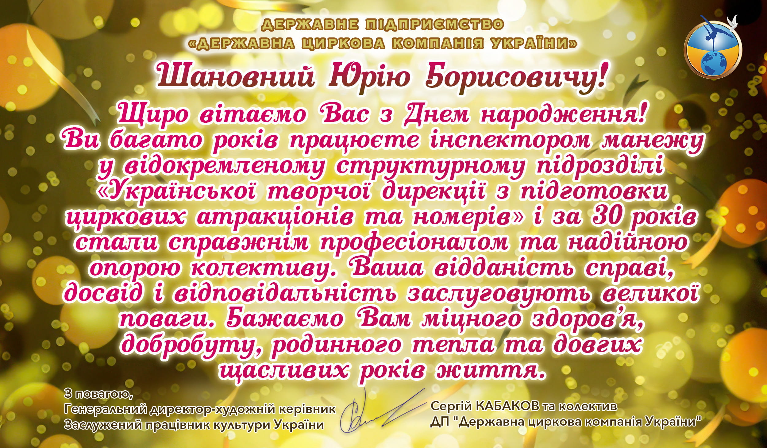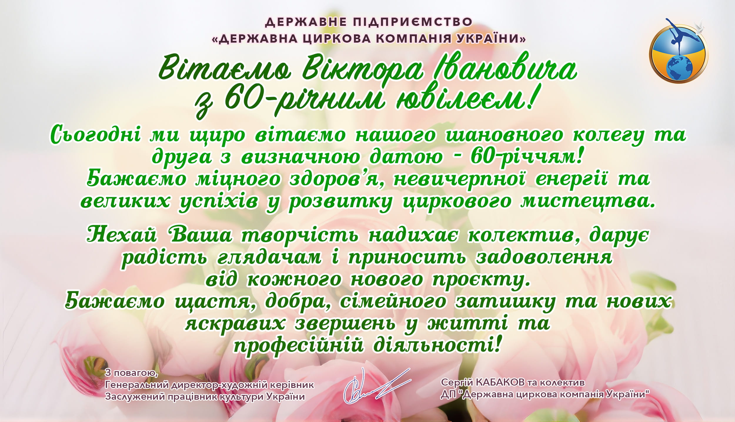 З 2016 року Державну циркову компанію України очолює Сергій Борисович Кабаков, талановитий режисер-постановник, організатор та адміністратор, людина яка вболіває за традиційне та сучасне циркове мистецтво.